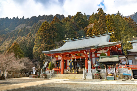 오야마데라 역은 오야마 케이블카 라인의 중간 역입니다. 이 역에서 양방향으로 오가는 케이블카를 볼 수 있습니다. 반대 방향으로 지나가는 두 케이블 카를 보면 마치 연인이 키스하는 것처럼 보여서 오야마데라 역은 연인들이 만나는 성스러운 장소로 인기가 있습니다.